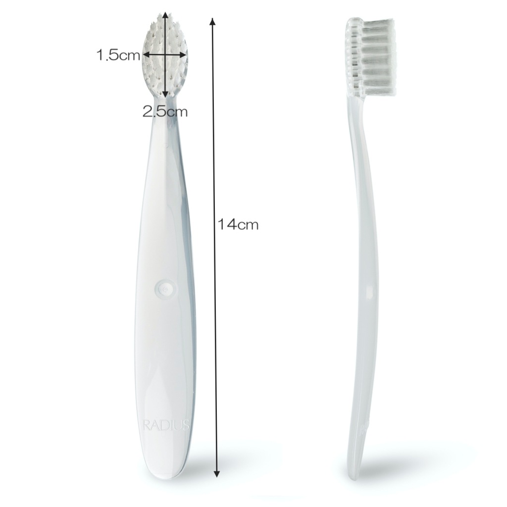 生後6〜18ヶ月の赤ちゃんのデリケートな歯や歯ぐきのために設計され、口内全体をやさしくマッサージして、小さな歯への歯垢の蓄積を予防します。