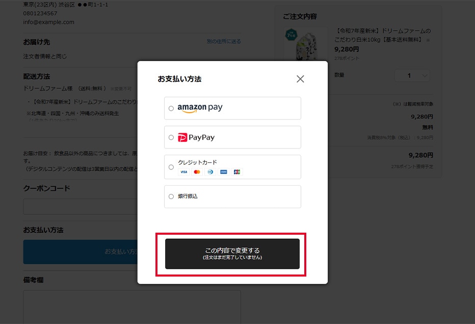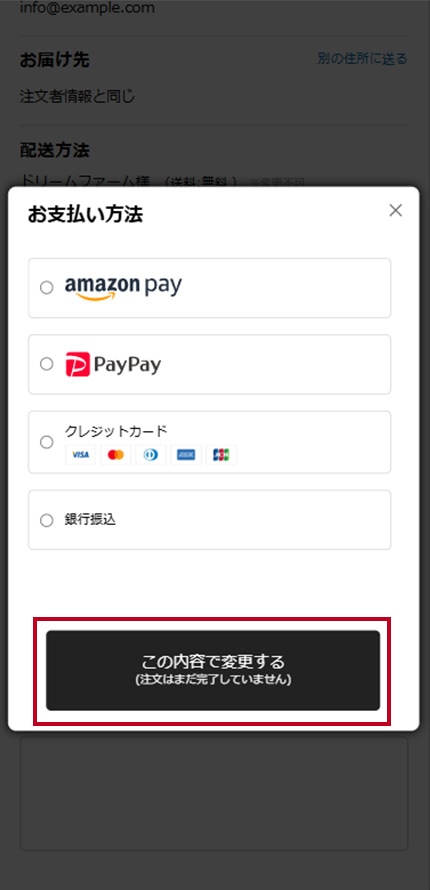 お支払方法を選択し、「この内容で変更する」ボタンを押してください。