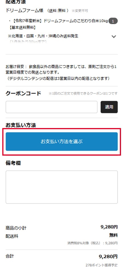 内容に相違なければ「お支払い方法を選ぶ」ボタンを押します。